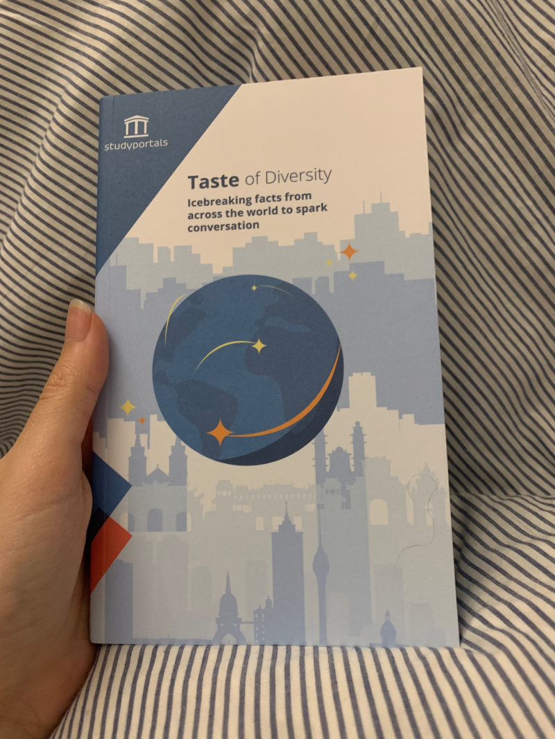Country pocket guide for client gift: For this project, a client gift needed to be created to show our appreciation of our clients at the end of the year. Ideas needed to be brainstormed and a final product created. As a team, we decided on a pocket guide with fun facts and a pair of custom Studyportals socks.For the pocket guide, I assisted in collecting 2 facts per country for 195 countries. I then worked with the project leader and our designer to help decide how to design the pages and cover of the book. Finally, I coordinated with the editor to create copies for the back text, inside welcome text, and informational text for clients at the end of the book. This end of year gift project concluded with a highly coordinated packing week in which we separated clients by country, collected individualized messages, and packed the gift sets to be shipped out before the end of the year.